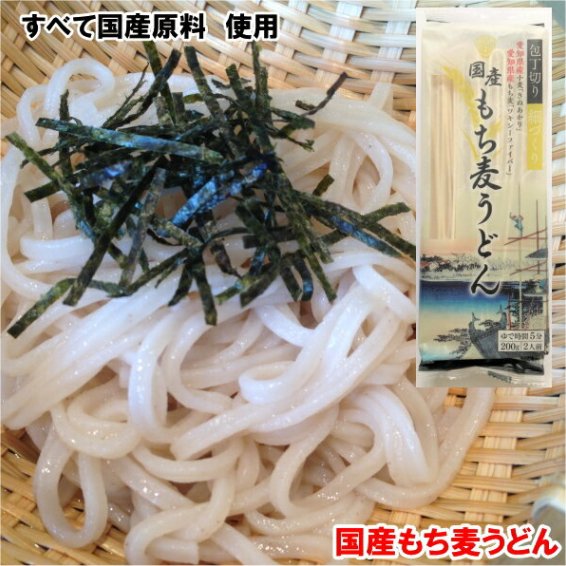 もち麦うどんには、国産のもち種の大麦粉と、国産の